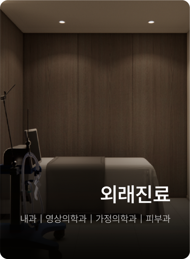 | Hours | 영상의학과 외래진료 09:00 ~ 18:00 (토 : 09:00 ~ 14:00) 내과 외래진료 08:00 ~ 18:00 (토: 08:00 ~ 14:00) 건강검진센터 08:00 ~ 17:00 (토 : 08:00 ~ 12:30) |